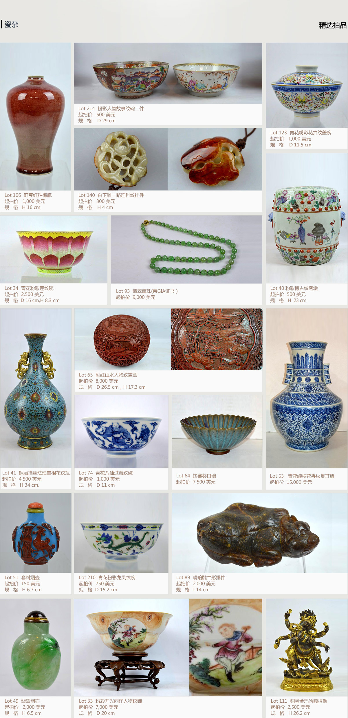 2017年1月15日 晚上11点15分,美国Eddie's Auction举办的新年中国艺术品专场拍卖会将在美国纽约和联拍在线同步开拍。本场拍卖会将呈现中国瓷器、玉器、书画、珍玩杂项等355件艺术珍品。大量拍品起拍价低至50美金,预展已在火热进行中,感兴趣的藏家可以登录联拍在线先睹为快。新年捡漏,万勿错过!