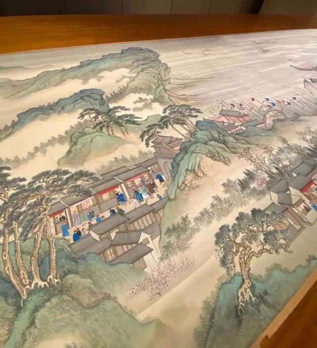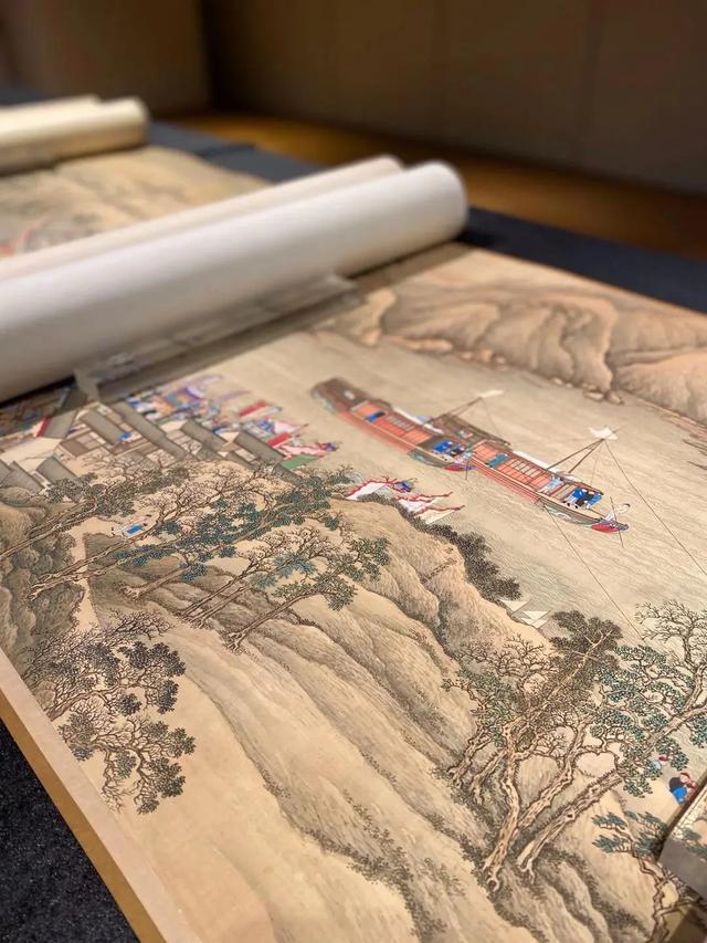 2010年,香港苏富比上拍《康熙南巡图第六卷》中〈焦山、瓜州及金山部分〉,由香港近墨堂投得,并开展其长达近十年之搜罗,对第六卷下落之深究。本幅如同其他清朝历代帝王遗容作品及御玺,在清朝光绪二十六年(1900) 之前的二百多年,皆藏于景山寿皇殿。据传一位在十九世纪末身处北京的法国老将军将其带离,至1939年这位将军离世,本卷依然藏于其波尔多家中。就其遗嘱所述,此卷早已分割出一段挂在饭厅,另外将余下部分一分为三,分别传予他的继承人。自此以后,第六卷就开始了不断分割的历程,成了如今所看到的七段长短不一的画作。近墨堂先后觅得首六段连续之画作,而第七段〈奔牛镇至常州府部分〉于2016年纽约苏富比举办「罗伊与玛丽莲·派普夫妇珍藏中国绘画」专场现身,由另一位藏家投得。蒙近墨堂及第七段之藏家慨允,香港苏富比举办是次展览「江天一揽—康熙南巡图第六卷」,七段终归合壁珠联。