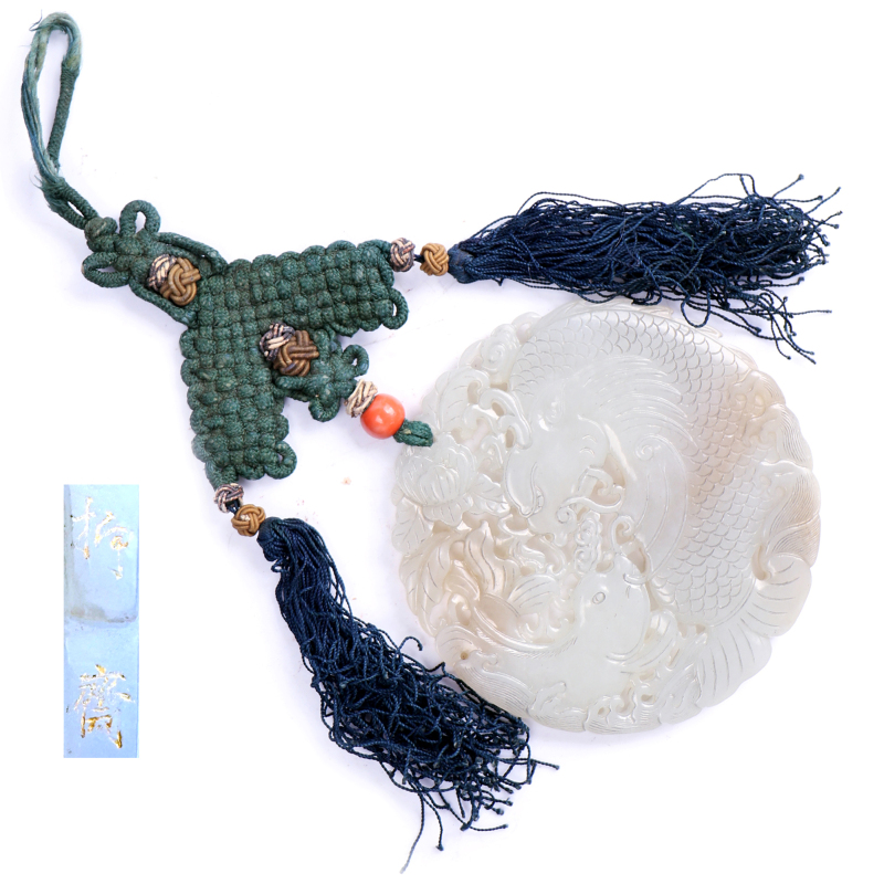 Chinese White Jade Carved Plaque