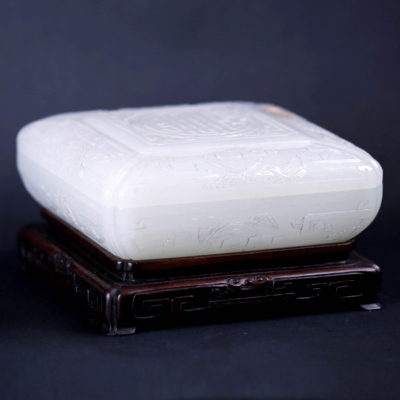 白玉雕盒 配黄花梨木座