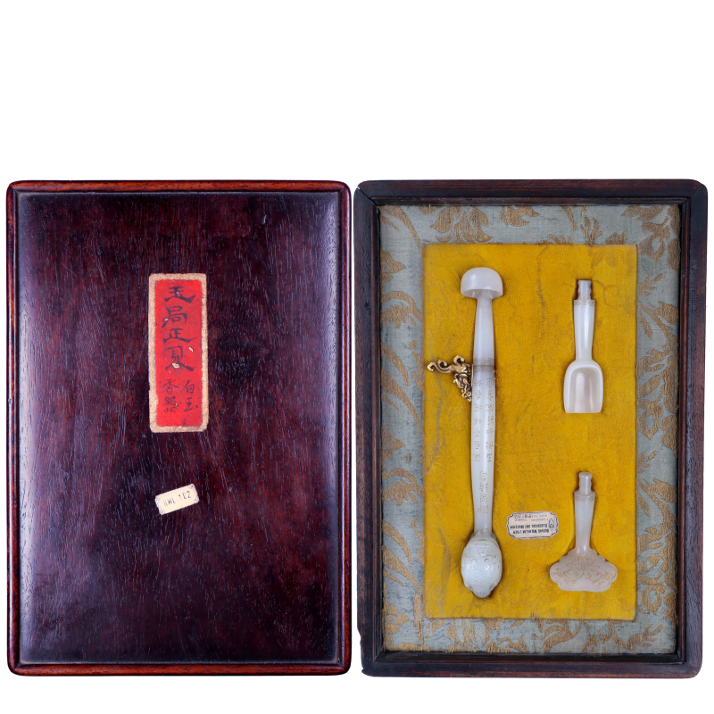 白玉香器 配黄花梨木盒