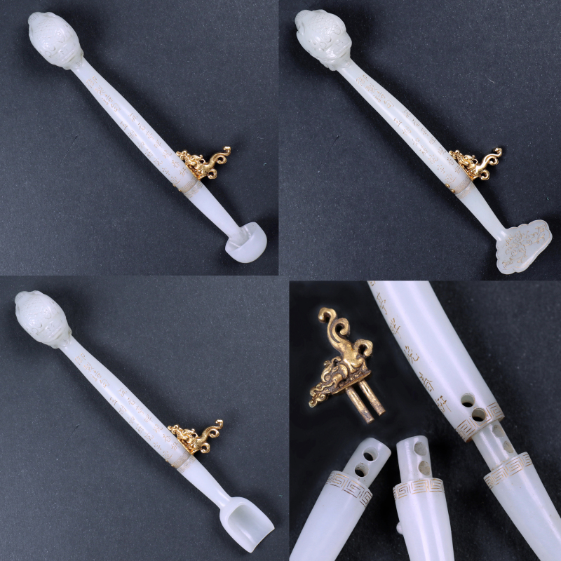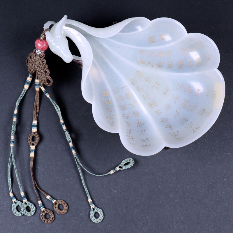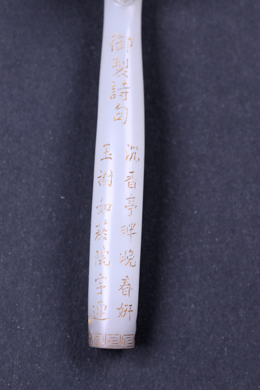 玉器上的诗句出自清代乾隆皇帝弘历创作的《咏痕都斯坦玉瓜瓣饮器》。原文为: