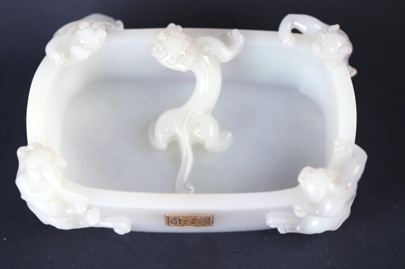 Chinese Jade Carved Animal Scupture With Gilding Box