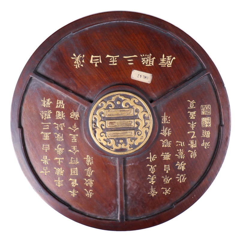 汉白玉三联璧 配分格木盒