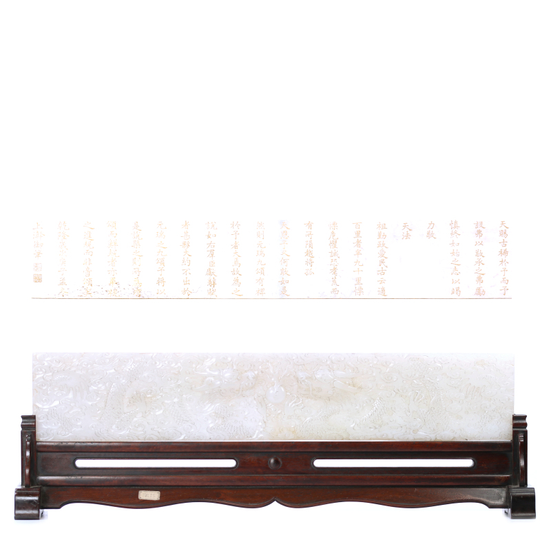 白玉雕玉牌 配黄花梨木座