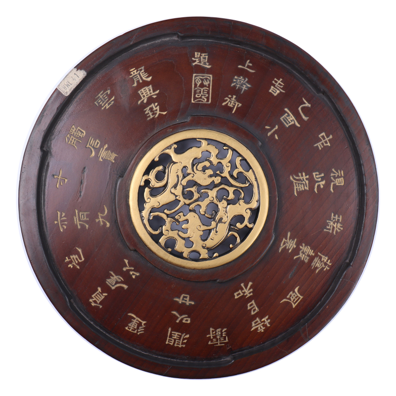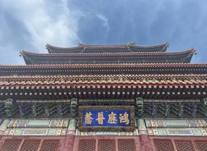 盖上雕刻的文字,应出自承德避暑山庄的皇家普宁寺大殿乾隆御笔的牌匾“鸿庥普荫”。