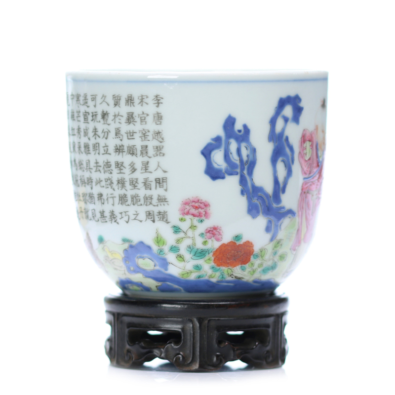 瓷杯上的文字内容为清代乾隆皇帝弘历创作的《成窑鸡缸歌》,原文: