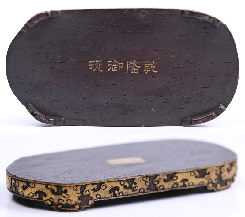 香器上的题诗“沉香亭畔晚春妍,玉树如烟院宇连。”出自清代乾隆皇帝弘历创作的《十宫词·其十·唐宫》。