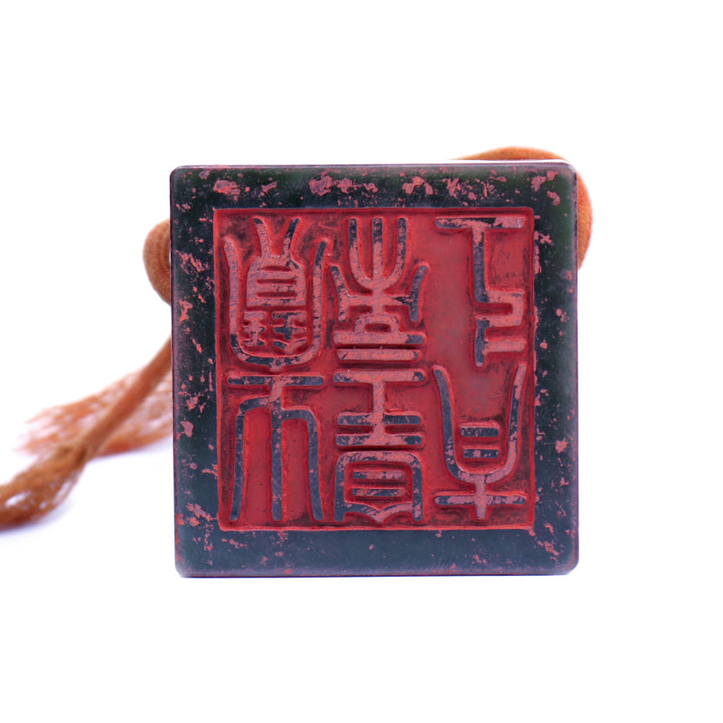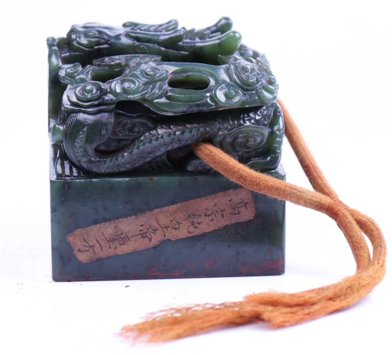 Chinese Green Jade Carved Big Seal