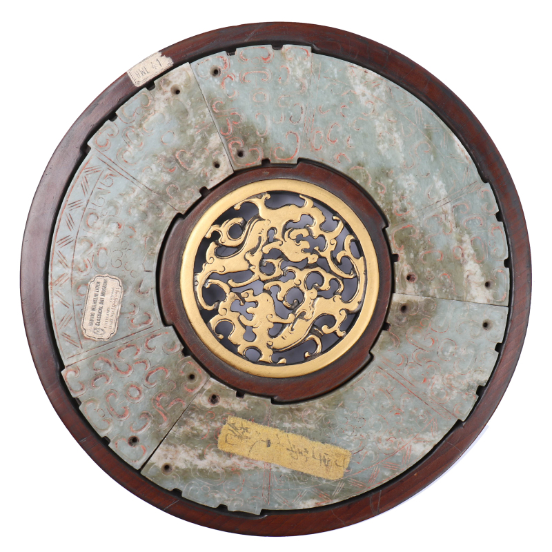 Chinese Jade Carved 'Bi' With Wooden Box With Partitions