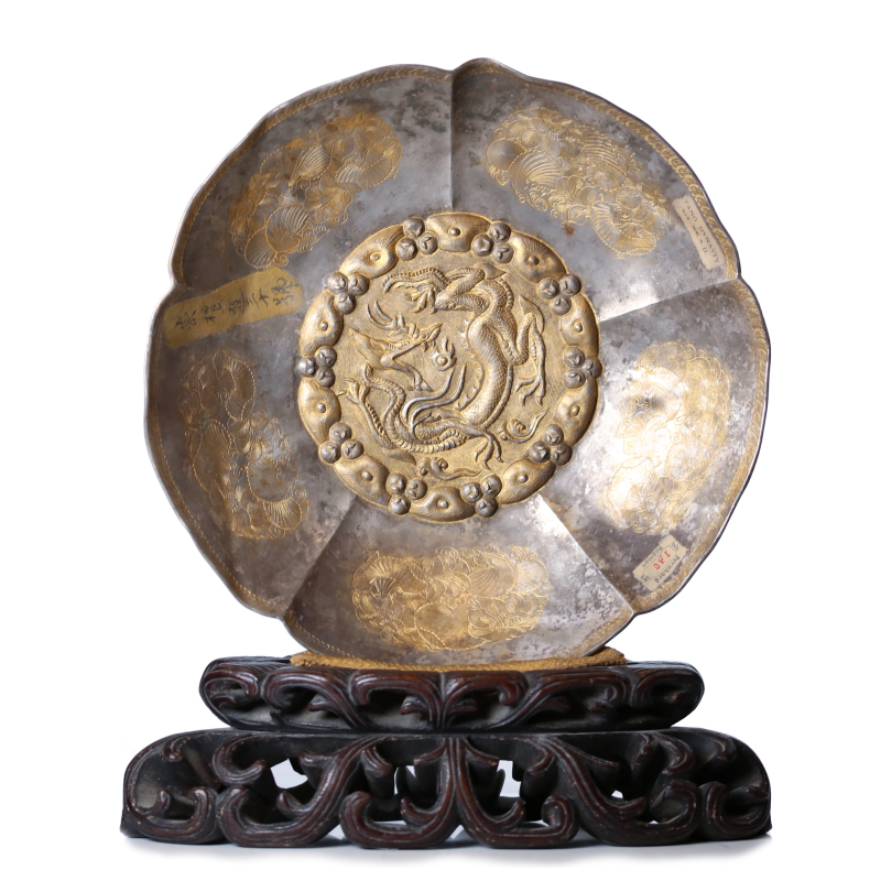鎏金银雕盘 配座