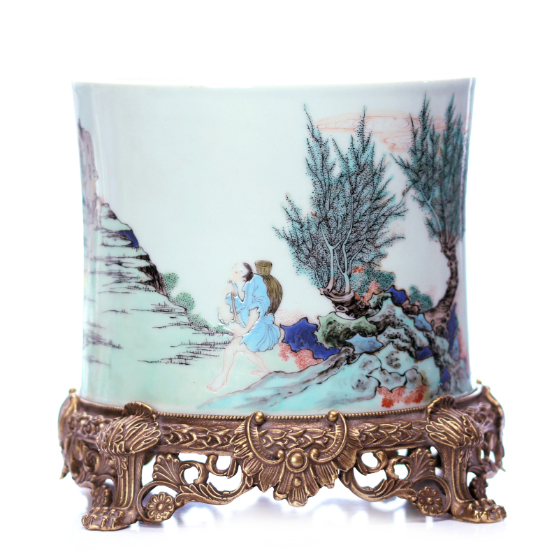 五彩釉瓷笔筒 配座
