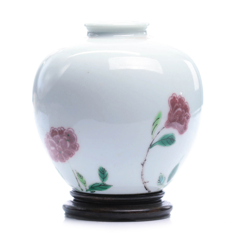 清粉彩瓷水盂 配座