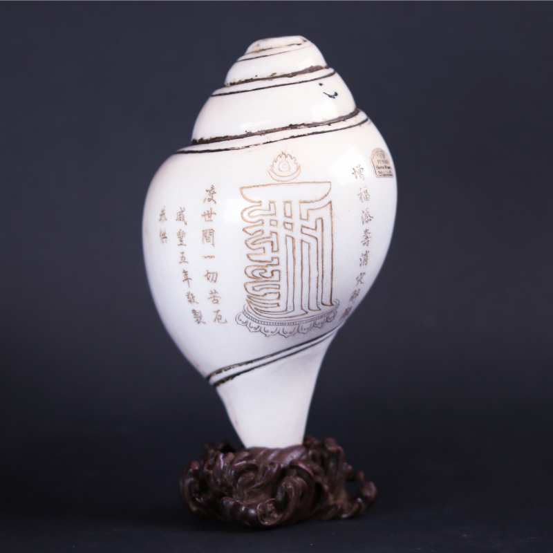 雕文海螺 配紫檀木座