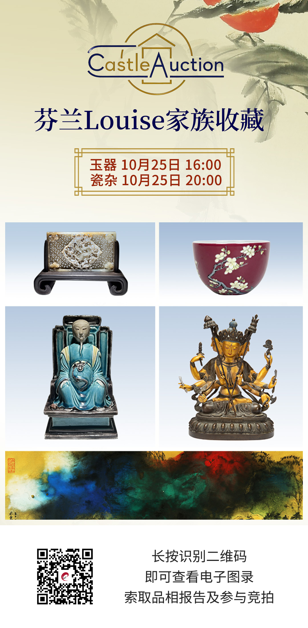 本次,Castle Auction将于10月25日推出「芬兰Louise家族收藏」专场拍卖,玉器部分于下午4点举槌,瓷杂部分于晚上8点接续。连拍臻全程直播,并提供实时同步竞拍技术和服务支持。