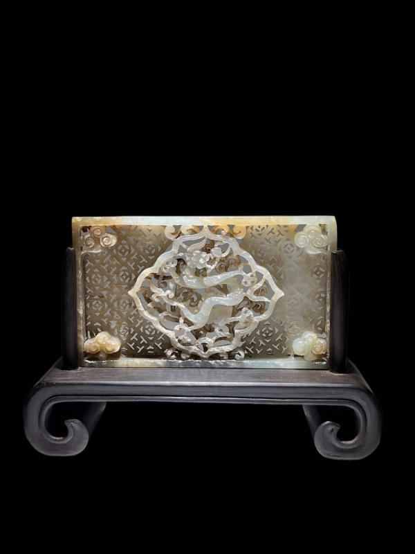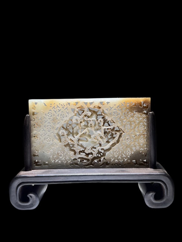 A Chinese old jade ornament, Ming Dynasty Pr. Wood stand included.