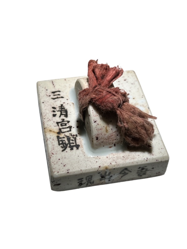 明代三清宫镇印,似乎从未在市场上出现过,边款“吾今出现、万鬼伏藏、律令九方、天圆地方”,正面似乎是道教符咒真言“六甲灵宝太上老君勅令”。“太上老君” 是道教所尊的至高神之一,被视为道的化身,代表着此符咒是秉承太上老君的意志,具有强大的神力,能驱使鬼神、辟邪驱煞、治病救人等 。