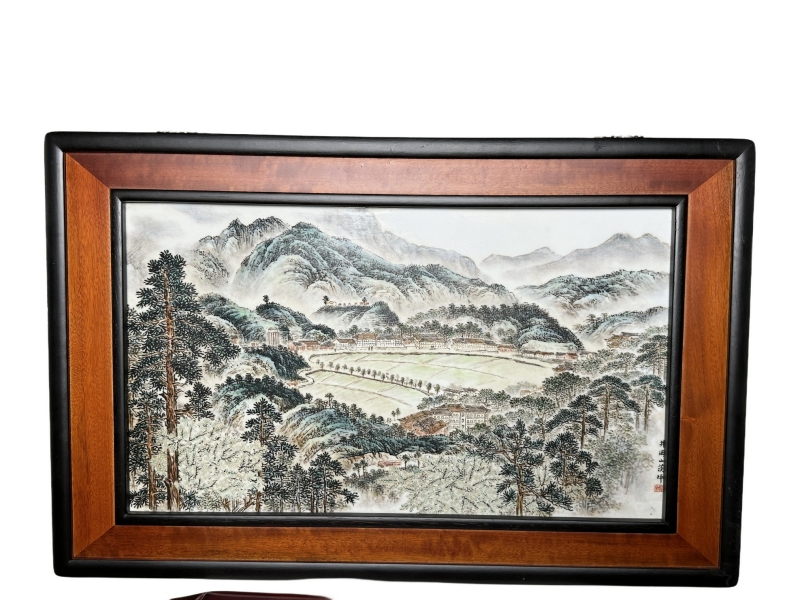A large Chinese Famille Rose porcelain plaque, 1970's Pr.