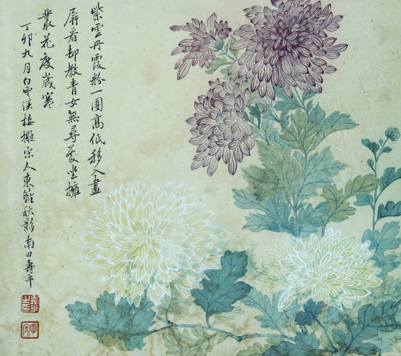 恽寿平最近是市场热点之一,最近其一幅扇面作品在香港以超出低估价的 77 倍成交,充分说明市场对精品作品的持续追捧。本件拍品有较明显的日式装裱风格,恽寿平以 “没骨法” 著称,他画菊花时不用墨线勾勒轮廓,直接以墨色点染。这种技法使菊花的形象更为灵动自然,淡化了物象轮廓的硬性约束,仿佛随风微颤,带着生动的生命气息。此件拍品值得研究。