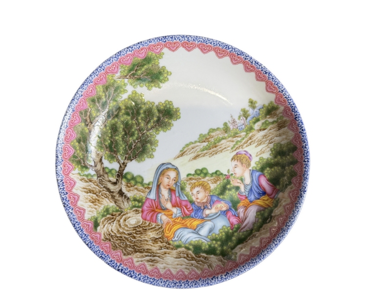 民国时期,一些曾在清宫造办处工作过的匠人流落民间,他们将珐琅彩工艺传承下来,民间开始出现仿制的珐琅彩盘。受到西方文化进一步影响,民国珐琅彩盘在题材上更为开放,像西方人物生活场景等题材更为常见,装饰风格上也出现了更多中西合璧的元素,既保留传统纹饰,又融入一些西洋风格的线条、图案等,是一个时代的缩影。