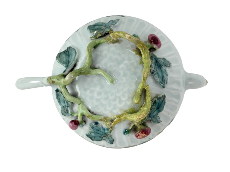 雍正大吉富贵菊形盖粉彩寿桃茶壶,采用传统吉祥元素极多,早年主要系荷兰王室定制,因为工艺过于复杂,现今保存完好者几无,值得收藏。