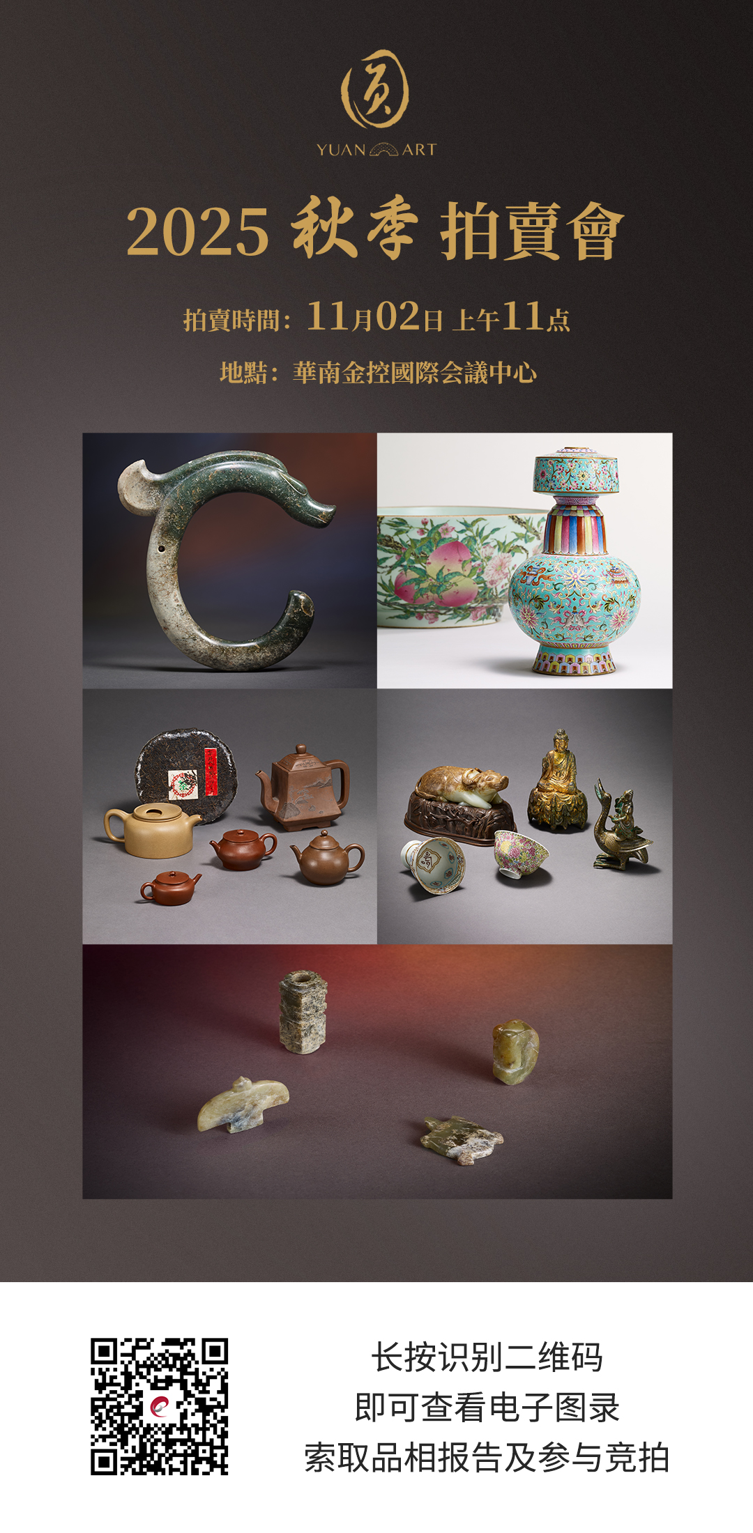圆国际艺术拍卖立足台北,深耕中国古代玉器及东亚艺术品,凭借深厚学术积淀,迅速成为业界新锐。圆国际艺术2025年秋季拍卖会将于11月2日上午11点举槌,连拍臻将全程直播,并提供实时同步竞拍服务。