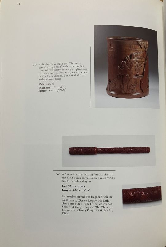 注:参一例十六至十七世纪剔红笔及盖,著录于《唐物漆器 : 中国・朝鲜・琉球──德川美术馆藏选集》,名古屋,1997年,页47,图版70。另参一件晚明剔红龙纹笔与盖,2021年5月11日售於伦敦邦瀚斯,拍品136。