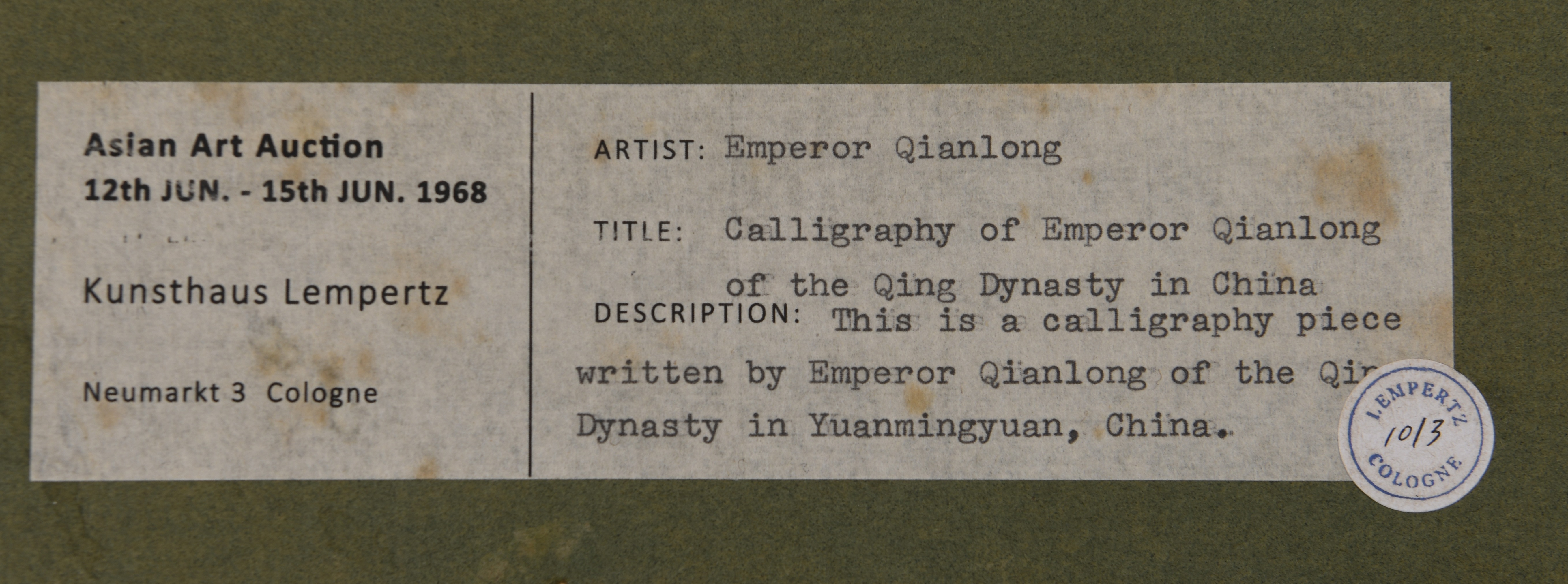附清單 乾隆(1711-1799),清朝第六位皇帝,定都北京後第四位皇帝。