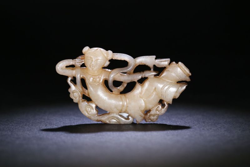 明 白玉飛天童子
