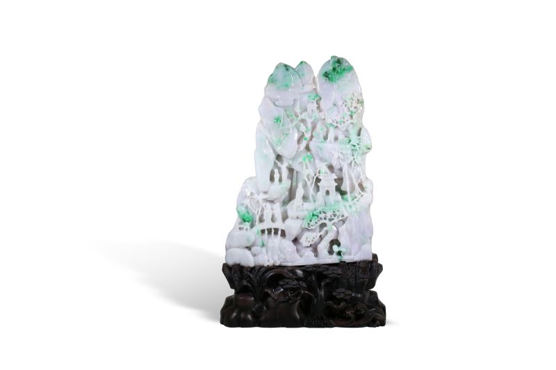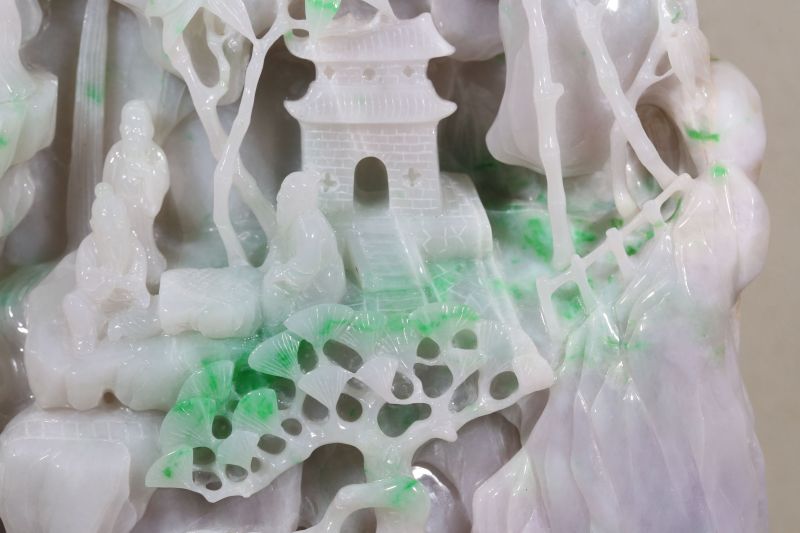 翡翠白底青山水人物山子