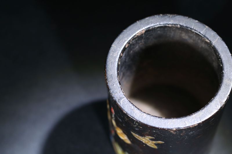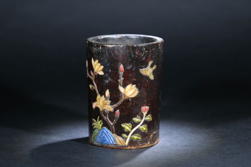 清 楠木嵌百寶花蝶筆筒