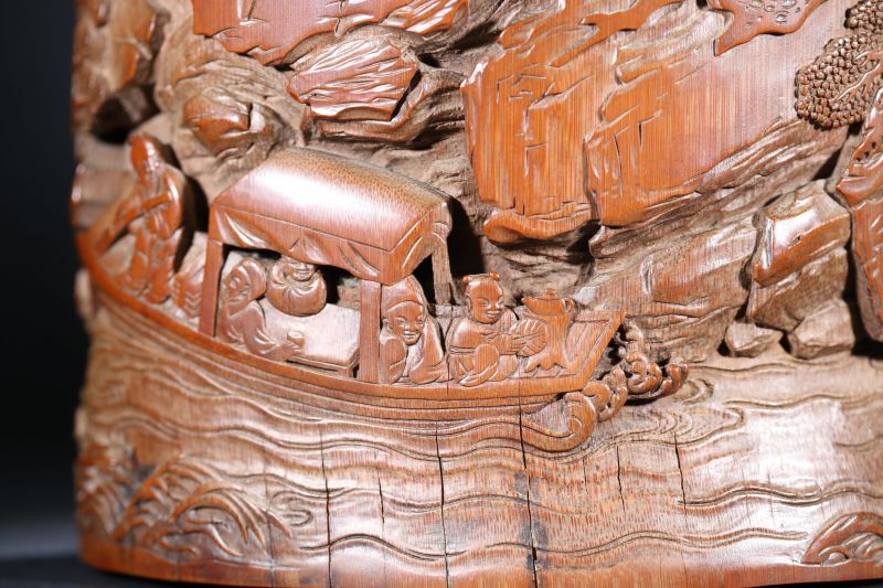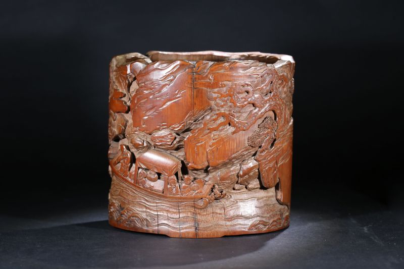 清 竹雕山水人物筆筒
