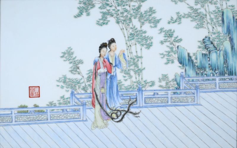 民國 粉彩仕女瓷板