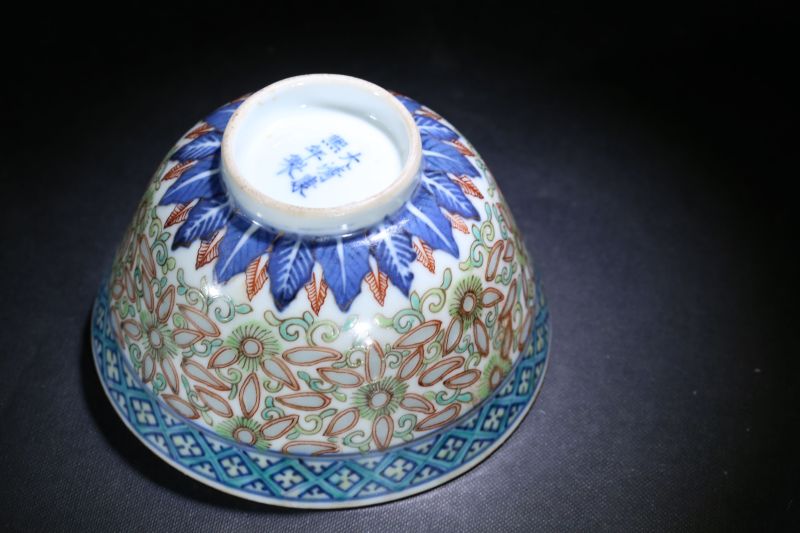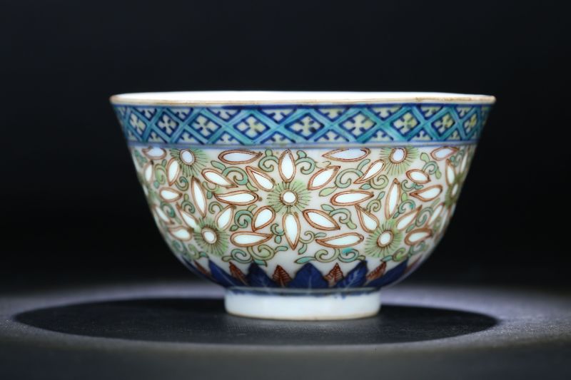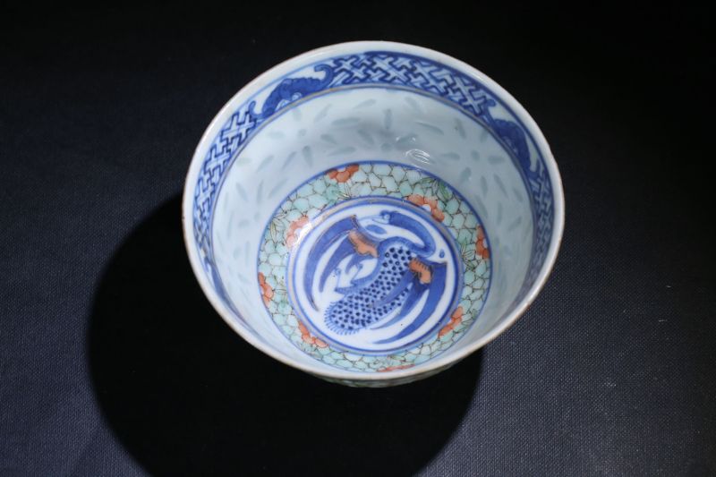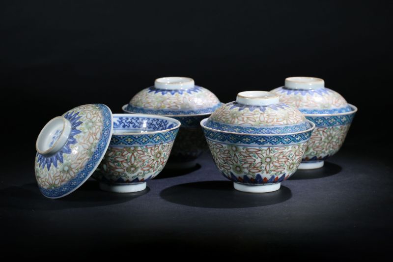 清 青花加彩米通碗一套4件