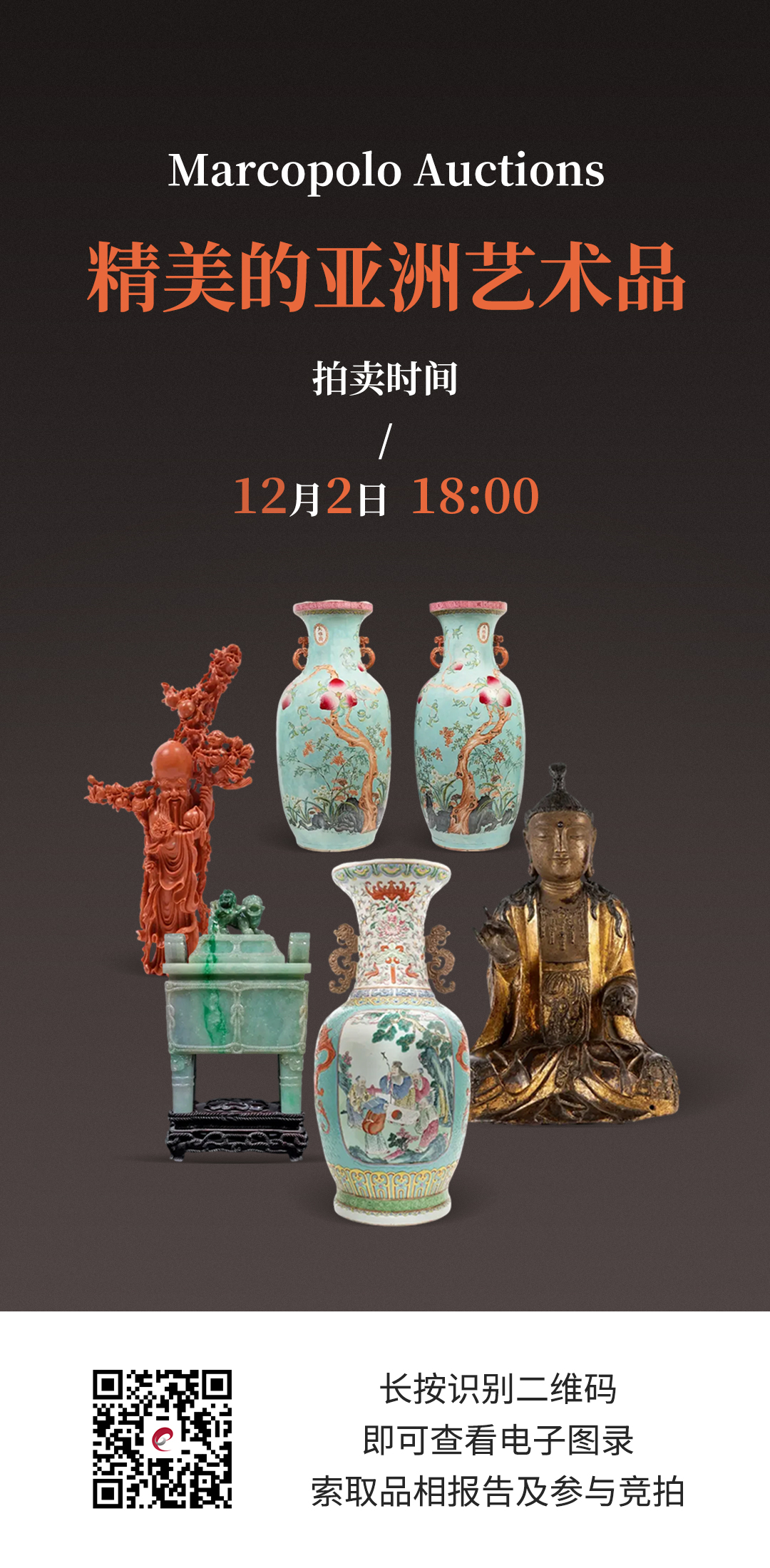 跨越时空的东方美学,再度惊艳亚平宁半岛!意大利首家专注亚洲艺术的拍行Marcopolo,自2022年横空出世,便凭借深厚的专家团队与贯通欧洲博物馆及顶级藏家的稀缺资源,迅速成为艺术市场的一匹黑马。北京时间12月2日18点,Marcopolo将举行『精美的亚洲艺术品』拍卖会,连拍臻全程直播,并提供实时同步竞拍技术和服务支持。