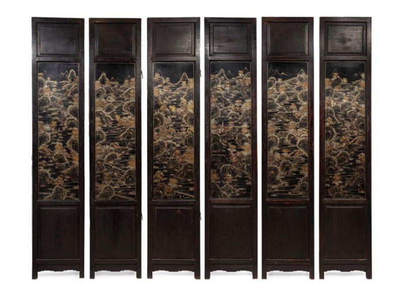 19/20世纪初 木框百宝嵌博古图六扇屏风
