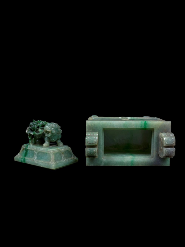 清 翡翠狮纽绳纹方鼎(可能乾隆年间 )