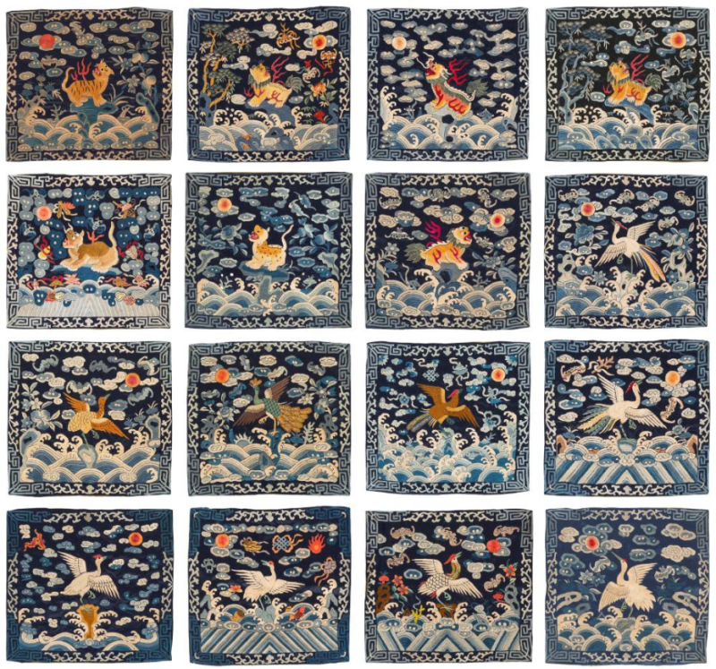 SIXTEEN EMROIDERY SILK 'RANK BADGES', CHINA, QING DYNASTY (1644-1911)