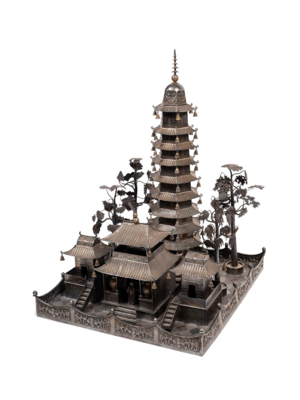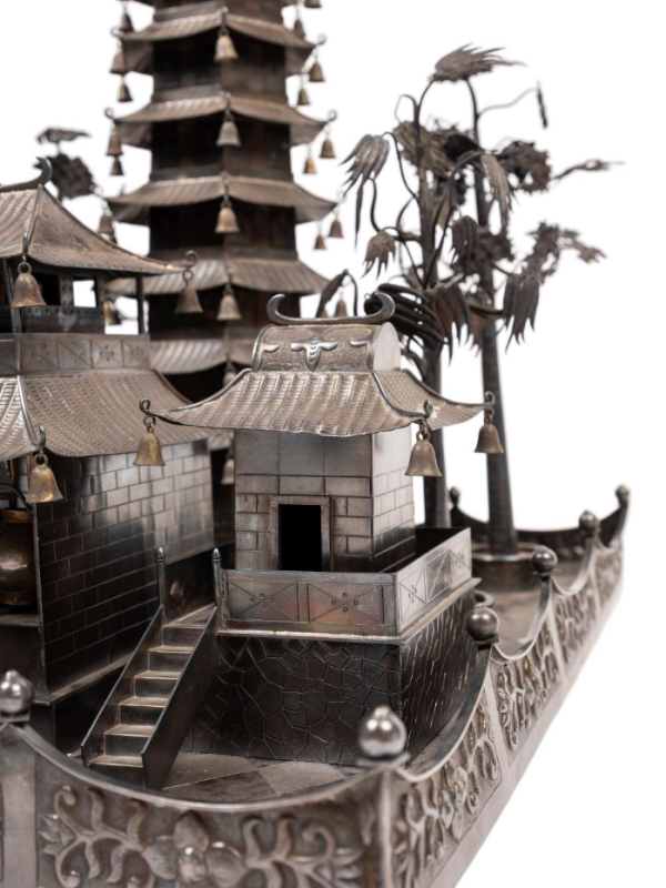A Large Silver Model Of A Temple With Pagodas, China, 20th Century
