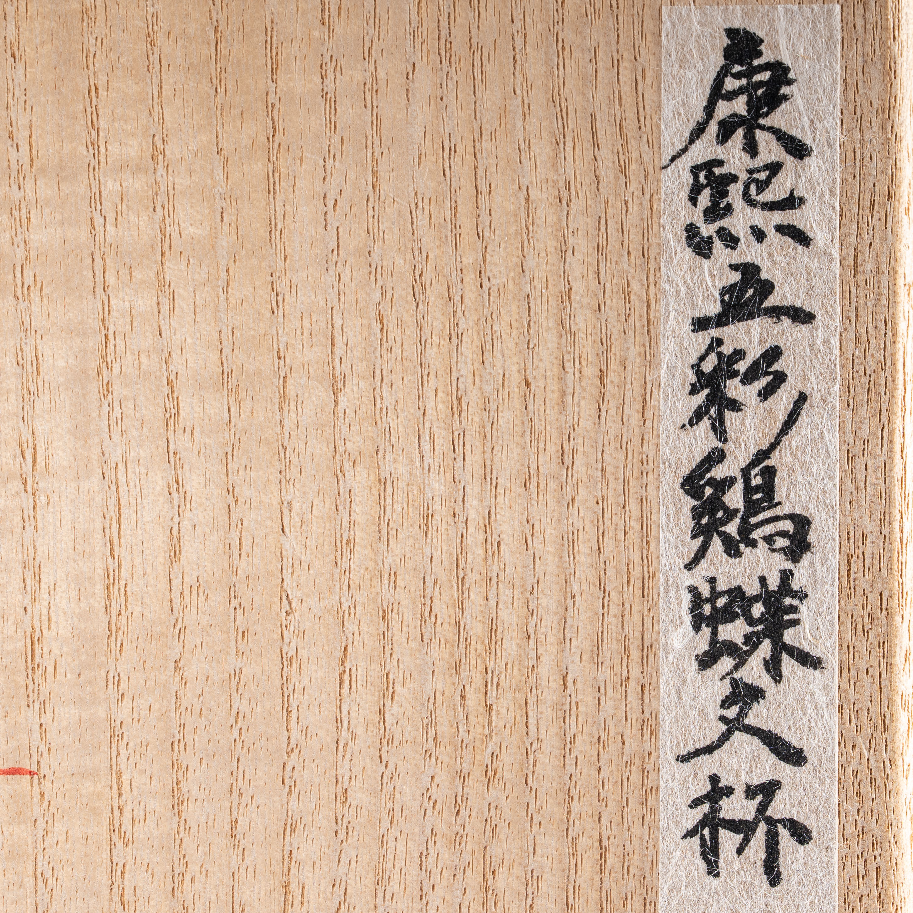 本品灵感直接源自明代成化鸡缸杯,此物在历史上地位崇高。成化瓷器以巧夺天工的彩瓷闻名于世,至明万历年间已属至珍。根据同期文献记载,至清康熙年间,成化彩瓷身价更高。彼时,江西巡抚郎廷极属下刘廷矶曾撰文记录,一对鸡缸杯的价值可比百金,一品难求,足见其珍稀程度。成化鸡缸杯在清代备受推崇,但因数量稀少,促使康熙御窑艺匠仿效烧制。此时期的仿品或带康熙本朝年款,或带“大明成化年制”仿款,纹饰力求忠实于成化原型。 康熙帝对瓷器烧造的重视与投入远超前代,他不仅对历代瓷器有深入研究,更在康熙十九年(西元1680年)下令景德镇恢复御窑厂。此举旨在研制新风格的各种瓷器,并成功创烧出可独步本朝的青花、五彩,引领清代官窑走上发展本朝特色的道路。其中,康熙二十五年由刘源承命设计的“花神杯”便是御窑器皿的创新典范。 本品作为康熙帝御制之作的青花五彩鸡缸杯,尤显珍贵。其器型与青花五彩的彩料风格,与同期创烧的“花神杯”体系相呼应,是康熙五彩瓷器中的重要一脉。以青花五彩为料进行开创制作的鸡缸杯案例在康熙朝亦属稀少。康熙帝作为青花五彩的开拓者,不仅完成了斗彩鸡缸杯的忠实仿制,更在工艺与发色上达到了超越成化的新境界。此杯正代表了康熙时期对传统经典的继承与复兴,以及在彩瓷烧造技术上取得的突破性成就。