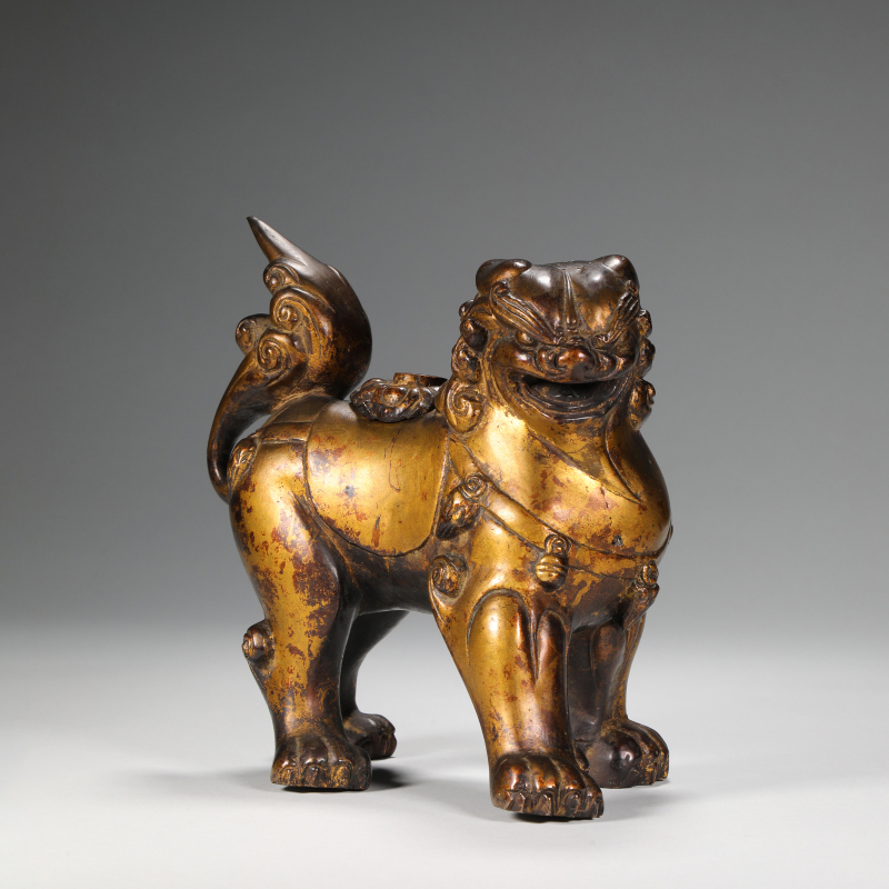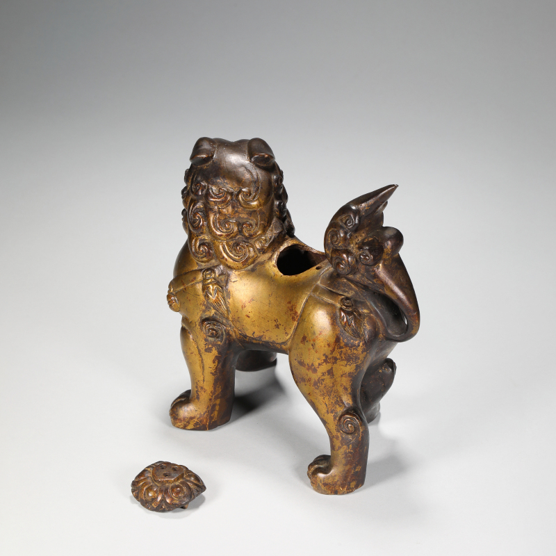 銅鎏金獅子香薰