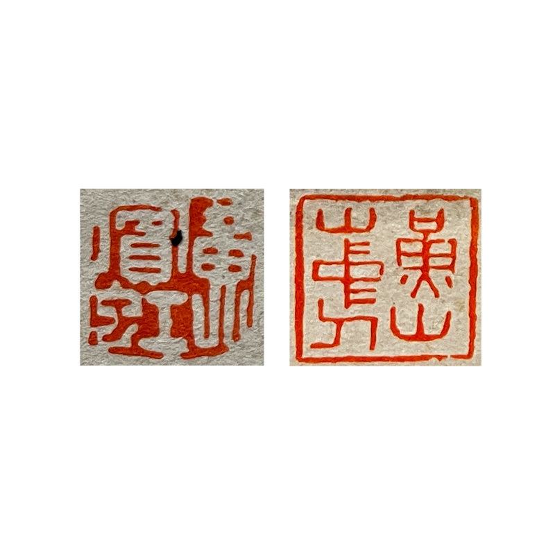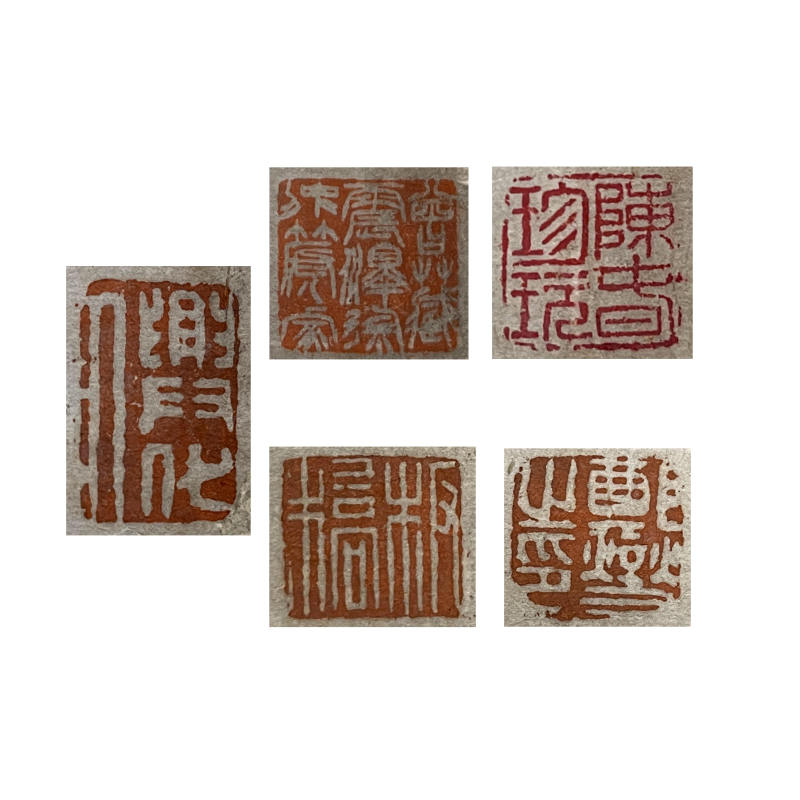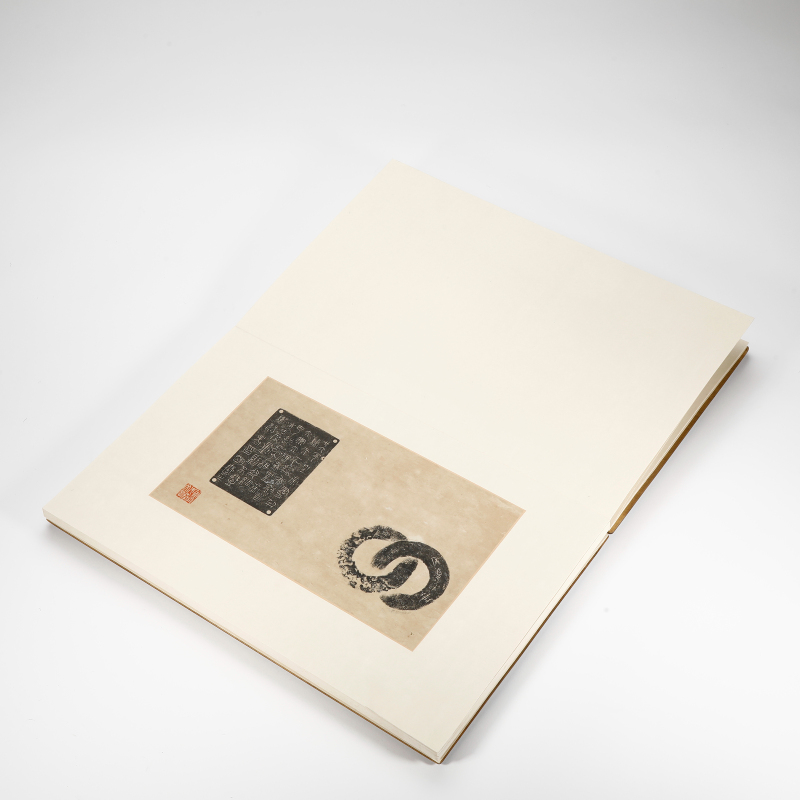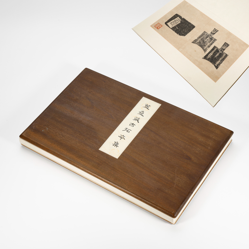 陈介祺(1813-1884),字寿卿,号簠斋,晚号海滨病史、齐东匋父,山东潍县(今潍坊)人。道光二十五年进士,官至翰林院编修。咸丰年间辞官归里,绝意仕途,一生专事金石收藏、考释与传拓,为晚清金石学泰斗。《清史稿》誉其“所藏钟鼎彝器为近代之冠”。其收藏宏富,商周青铜器二百馀件,包括毛公鼎、兮甲盘、大丰簋等重器;古玺印七千馀方,多为战国秦汉精品;另有秦汉权量诏版、古镜、封泥、陶文等。陈氏精于鑑别与传拓,创新全形拓技法,墨色浓淡得宜、立体感强,著《传古别录》总结拓墨经验,广为流传。著述丰富,有《簠斋吉金录》、《十钟山房印举》、《封泥考略》(与吴式芬合辑)、《簠斋尺牍》等,对金石学、古文字学贡献卓著,影响深远。 本品《陈介祺藏古拓本集》八开,为簠斋旧藏古器物拓本精选合册。木板函套,封面嵌牙签“簠斋藏古拓本集”,保存完好。内集陈介祺亲监或手拓之商周青铜器、秦汉古玺、权量、古镜等拓片,乌金拓居多,拓工精绝,墨韵苍润,器形铭文清晰完整,浓淡层次分明,充分展现簠斋传拓之绝技与“传古”精神。拓本多钤簠斋藏印,部分或有题跋,学术与艺术价值兼备,为研究晚清金石收藏与传拓艺术之珍稀资料,弥足珍贵。