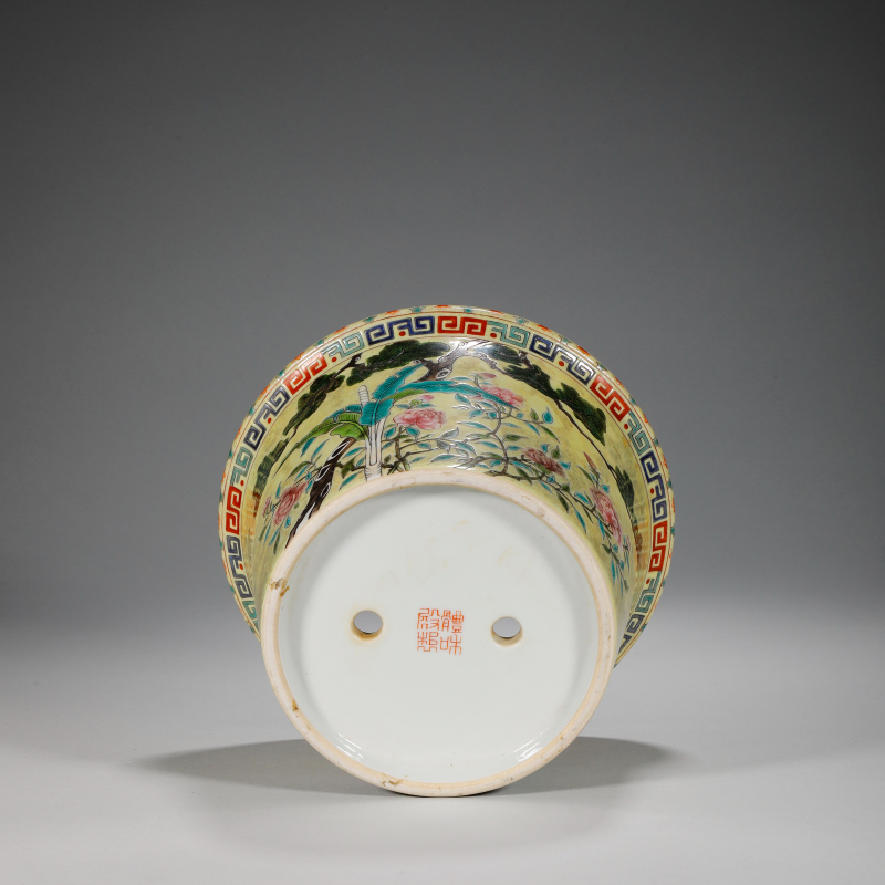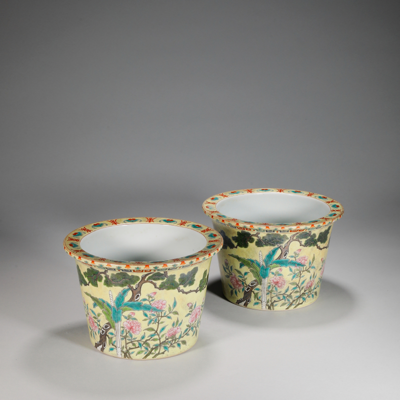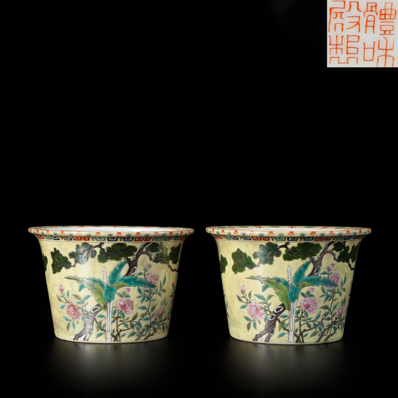 清 粉彩花卉紋花盆一對