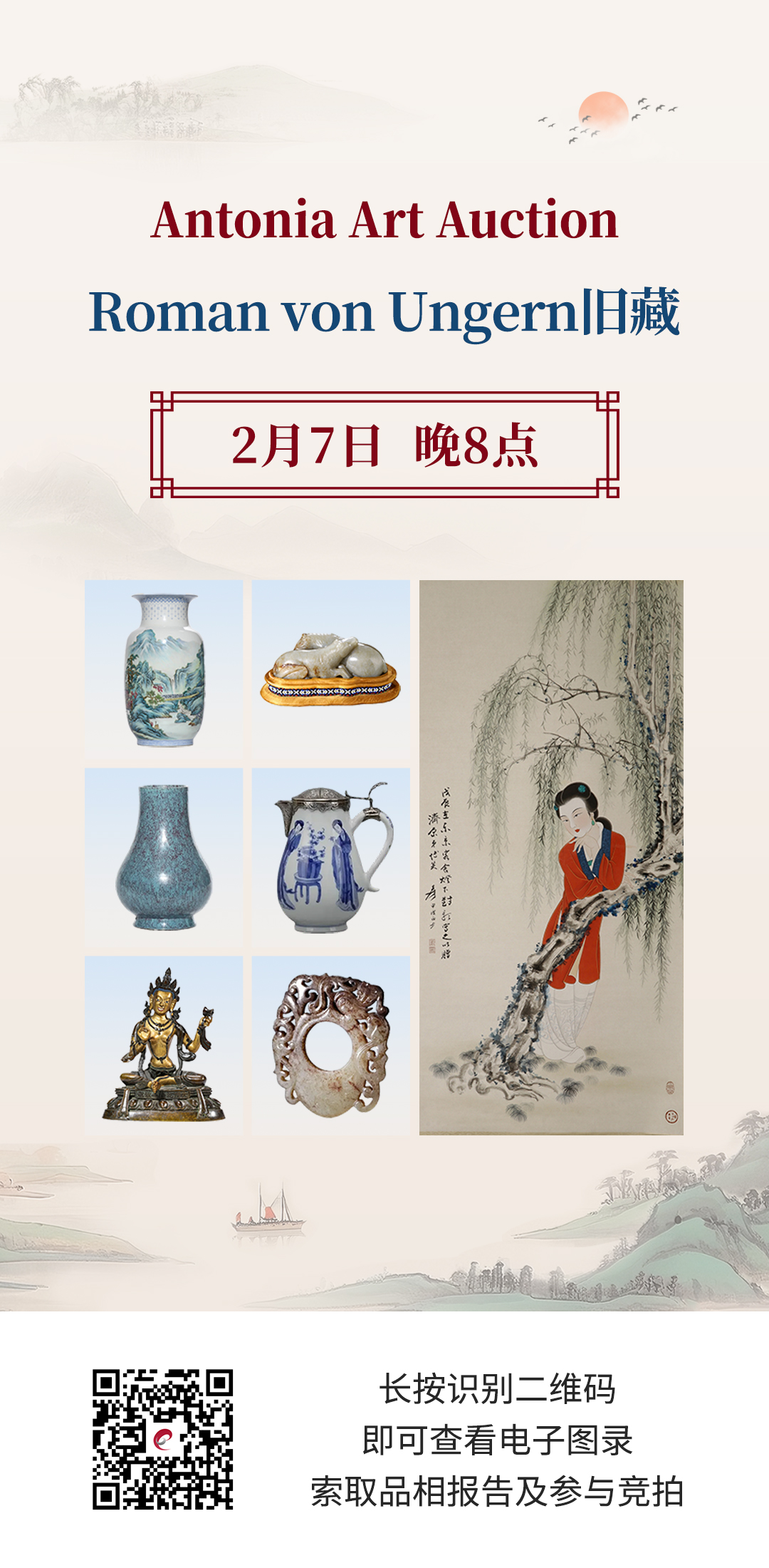 Antonia Art Auction坐落于拉脱维亚,作为欧洲老牌拍卖行,多年来深耕亚洲艺术,坐拥丰富的北欧及俄罗斯艺术资源。经过一年精心筹备,将于北京时间2月7日(本周六)晚8点,带来Roman Von Ungern家族旧藏专场。连拍臻全程直播,并提供实时同步竞拍技术和服务支持。