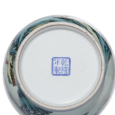 整器胎质细腻,釉面莹润,粉彩发色纯正,构图疏密有致,既具传统山水画的文人意趣,又体现了民国瓷绘的精湛工艺,是一件兼具艺术价值与收藏价值的民国瓷绘佳作。