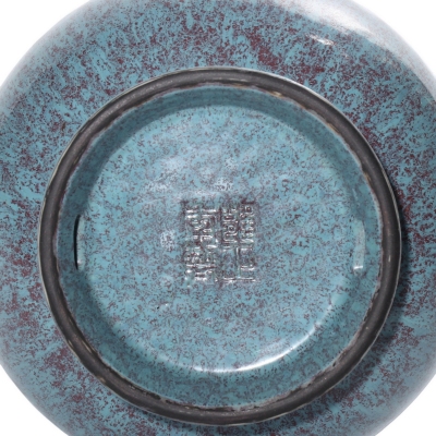 底部 “雍正年制” 四字篆书款,字体工整,胎质坚致,修足规整,体现了御窑厂严格的制瓷标准。炉均釉始于雍正时期,因需在炉中二次烧成而得名,其釉色瑰丽、工艺复杂,存世精品极为稀少,是清代宫廷单色釉收藏中备受追捧的品类。