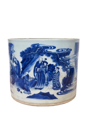 清康熙 青花人物故事图笔筒