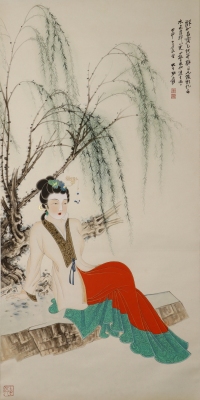 张大千 柳荫仕女图