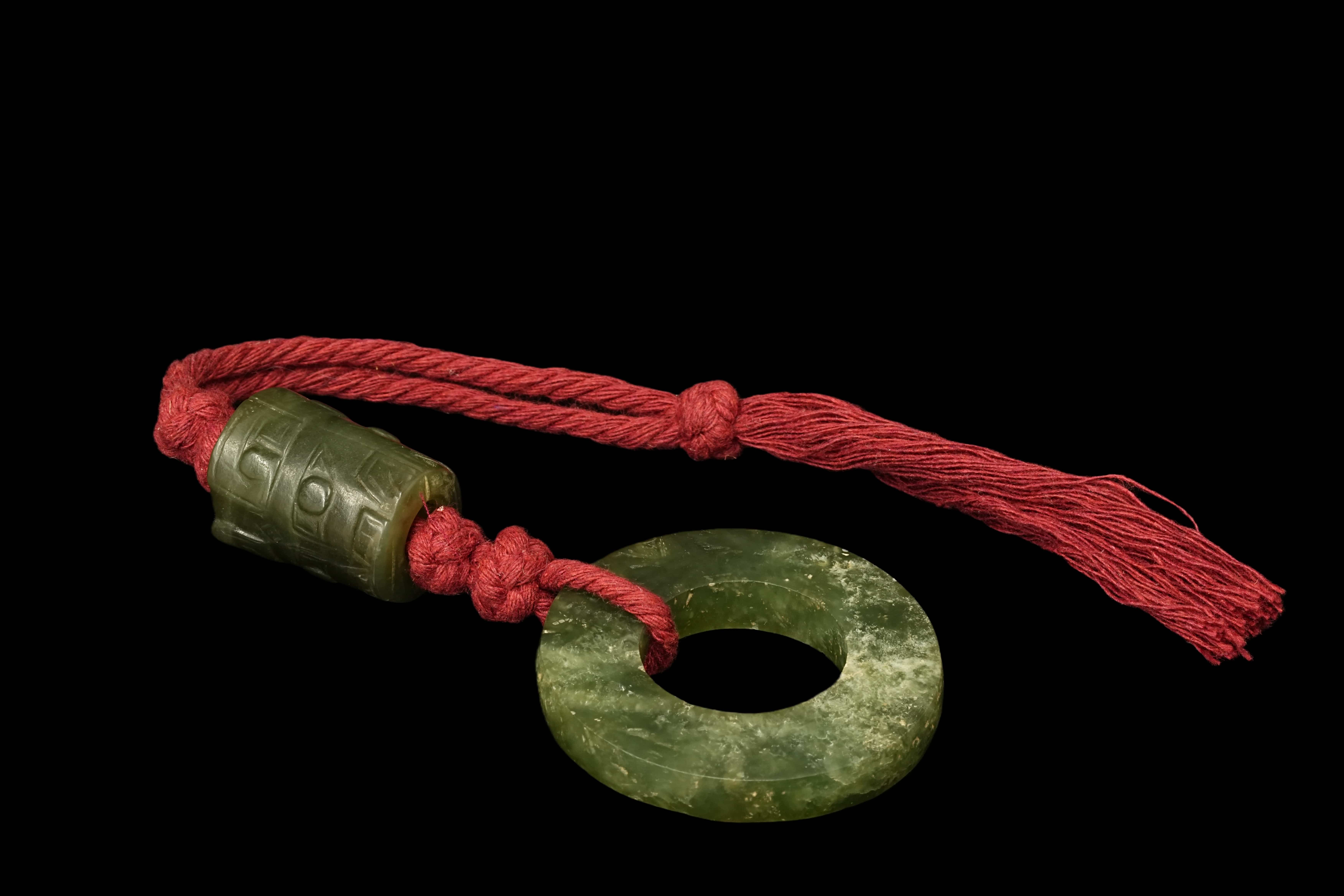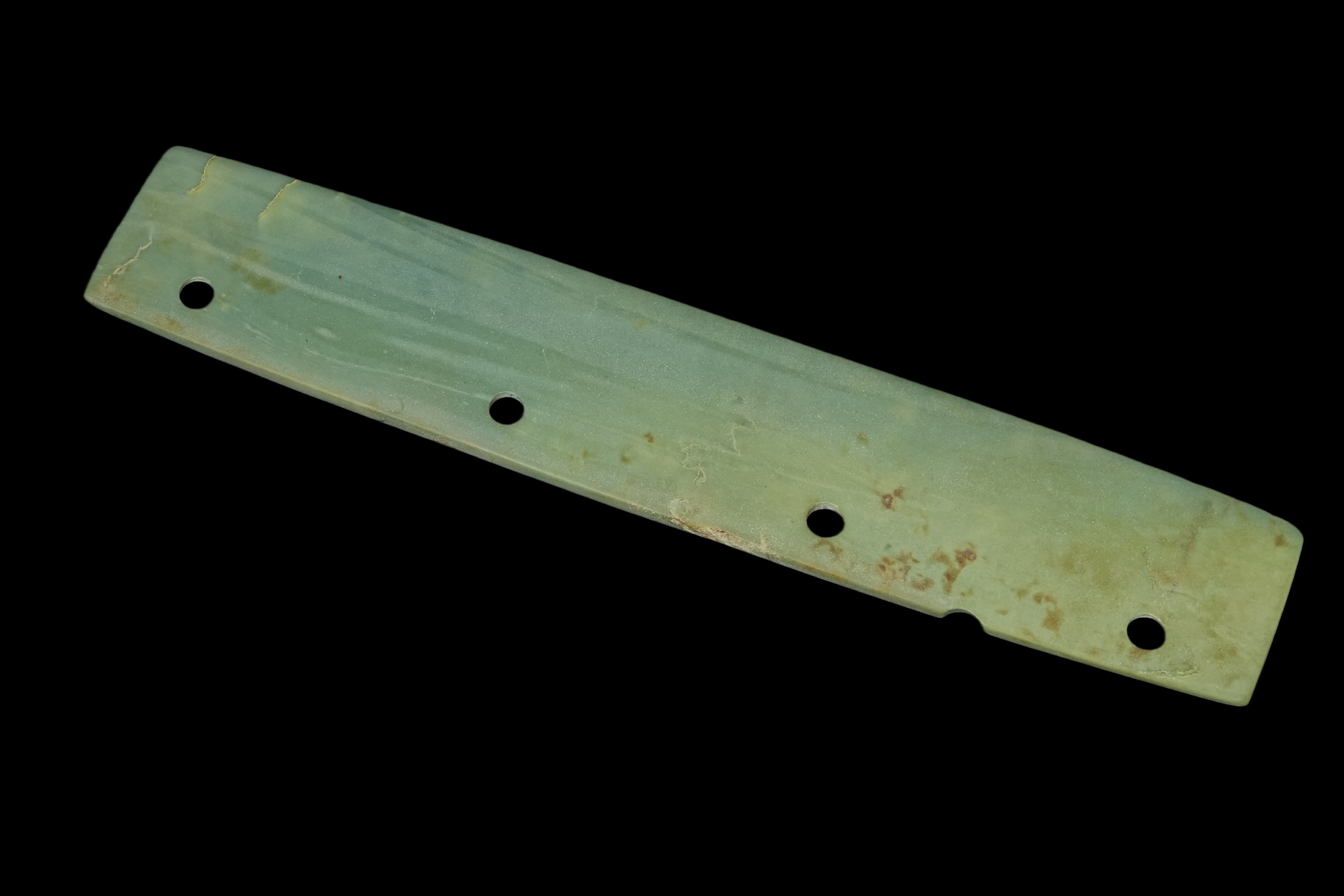 明或明以前 四孔玉刀 锦箱附