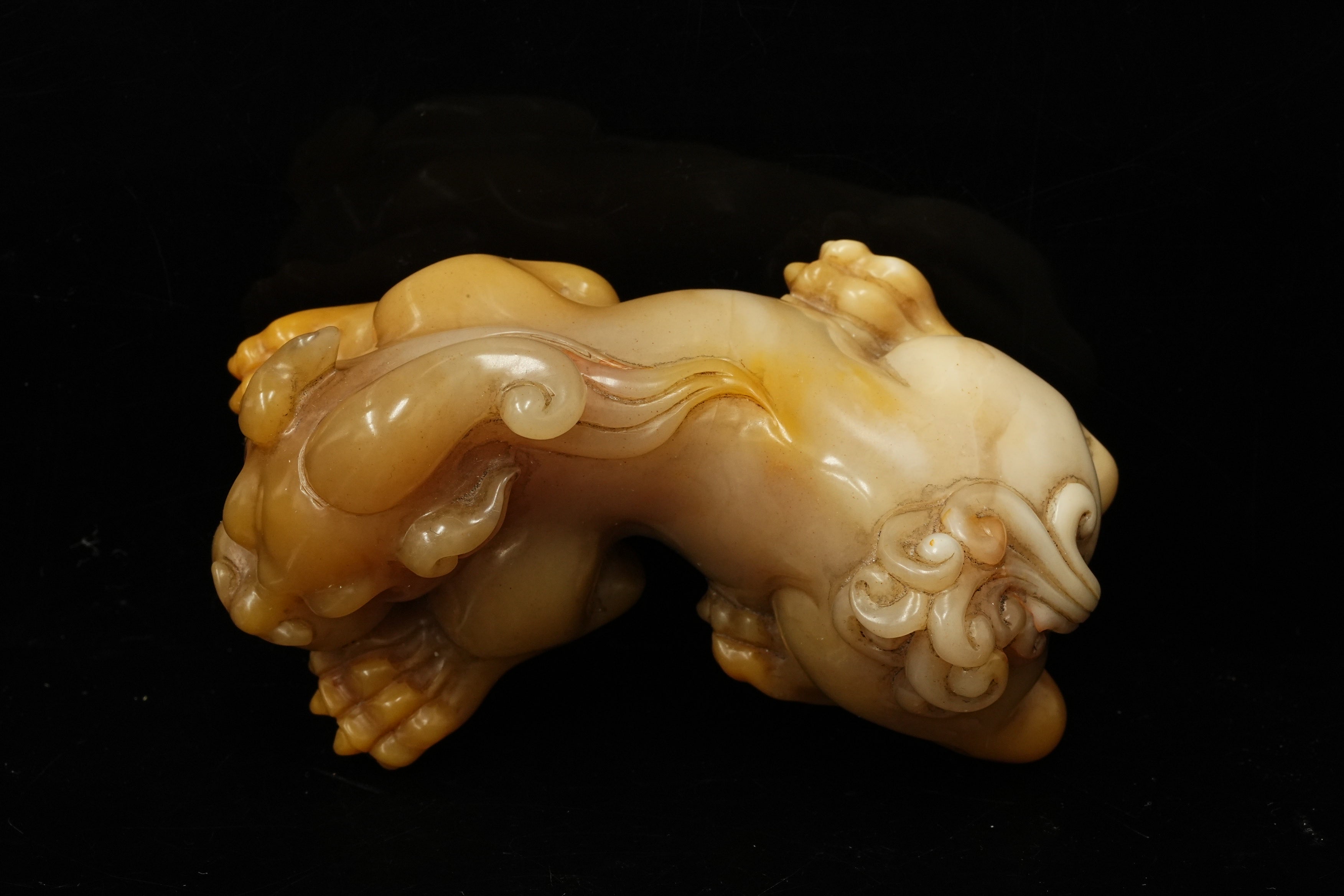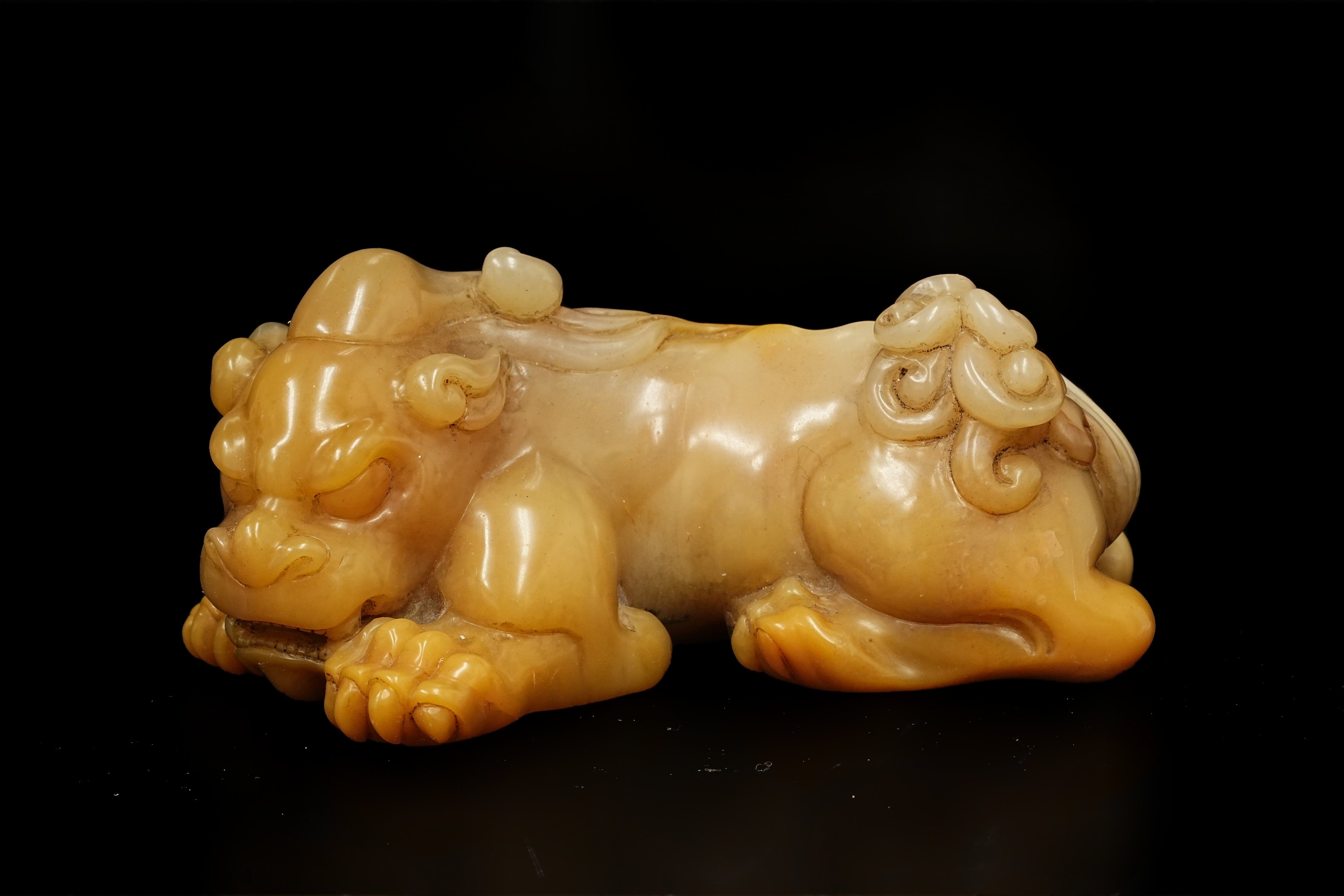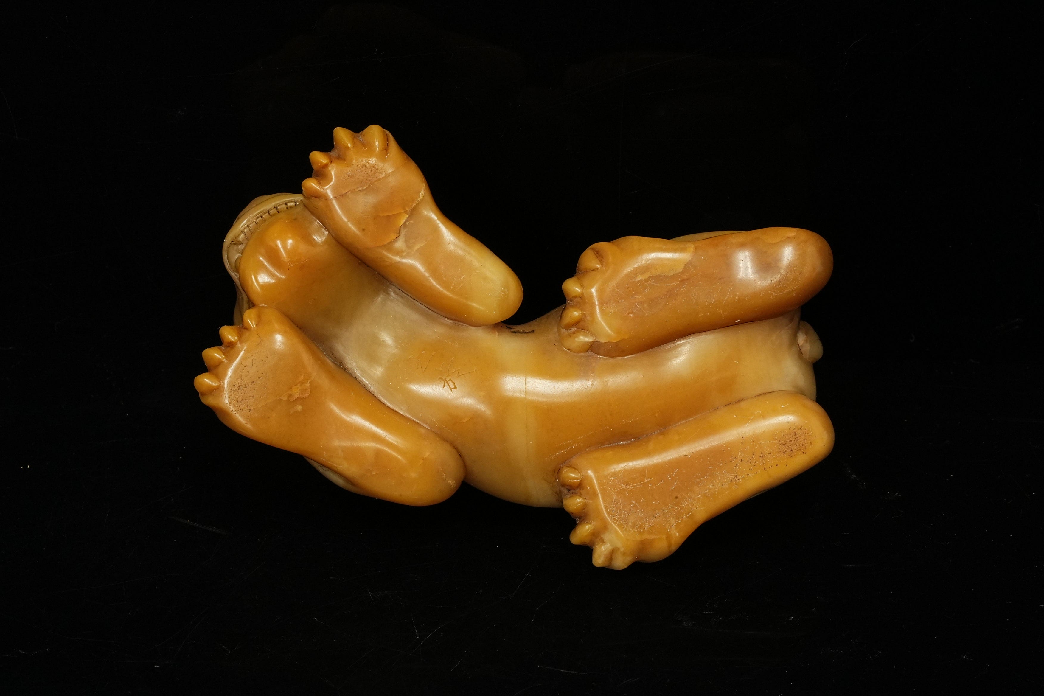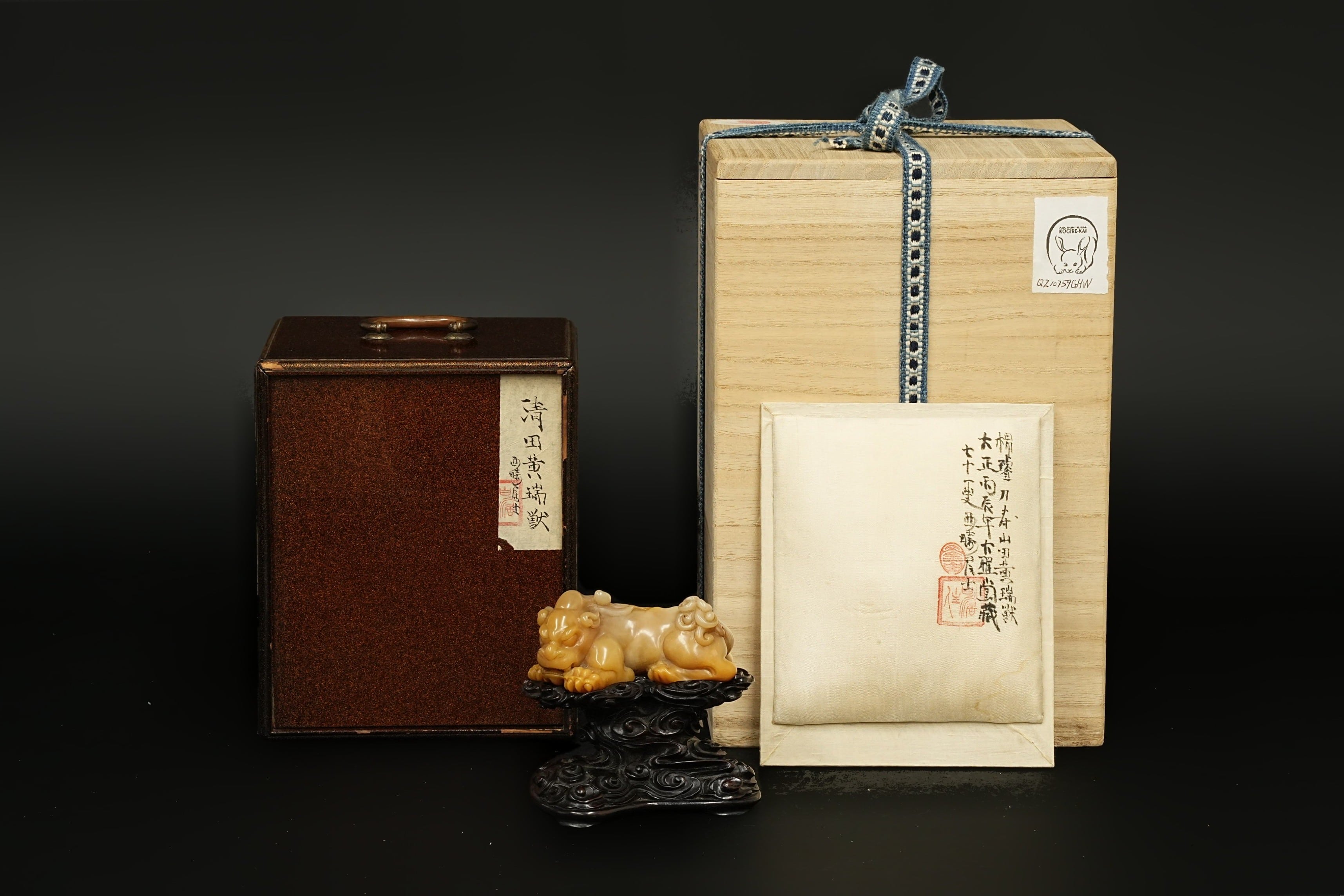 清初 田黄石瑞兽 在铭 托附 日本双重箱附